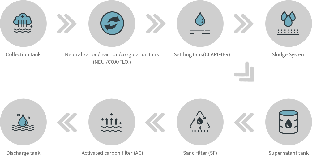 Sewage is a mixture of sewage and miscellaneous wastewater discharged from houses, public institutions, and commercial facilities, and sewage treatment consists of a single process or a combined process of the following treatment methods.