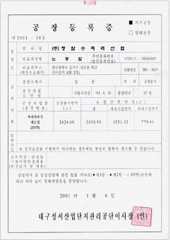 Factory registration certificate