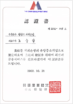 Certificate (Korea Development Bank)