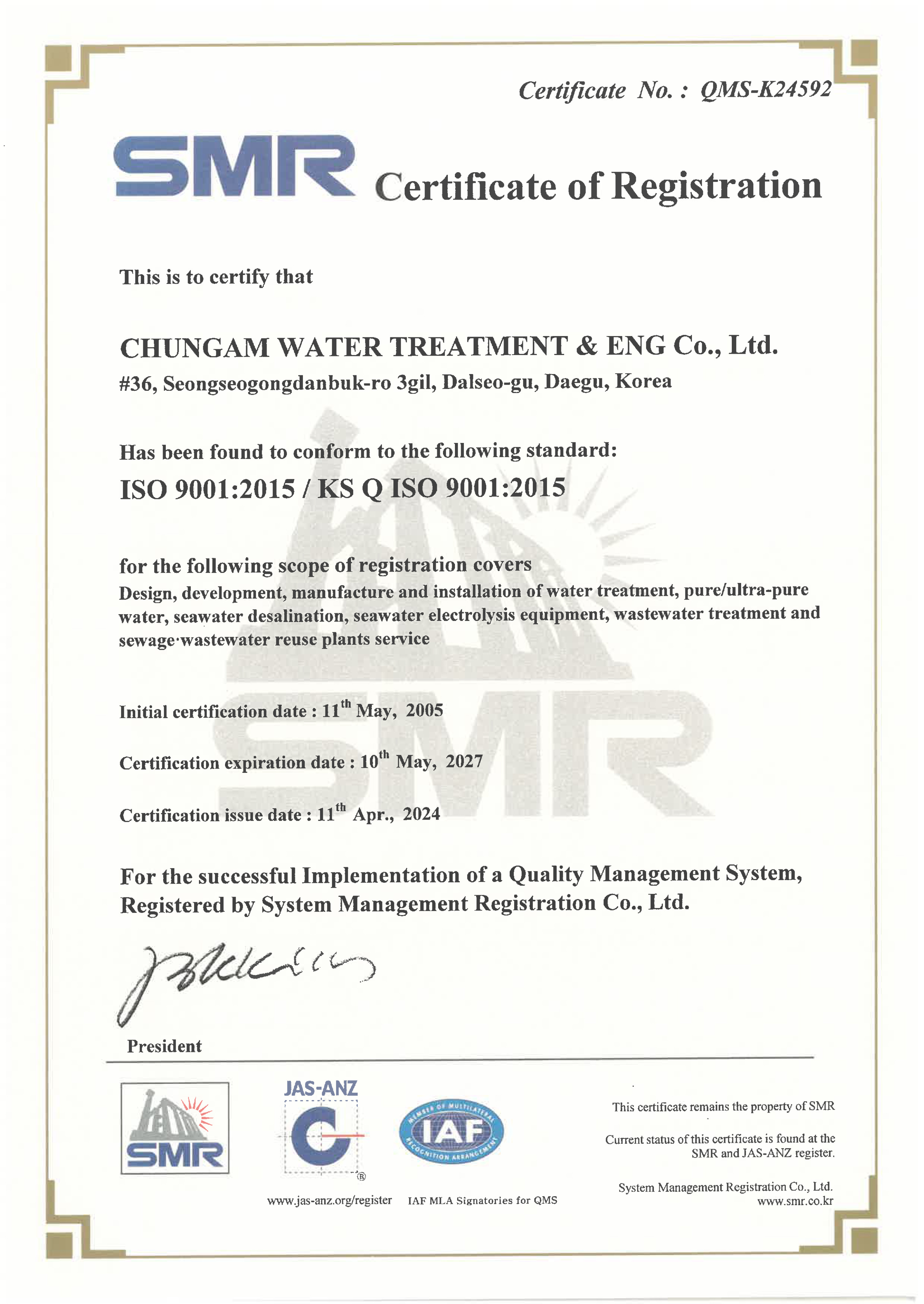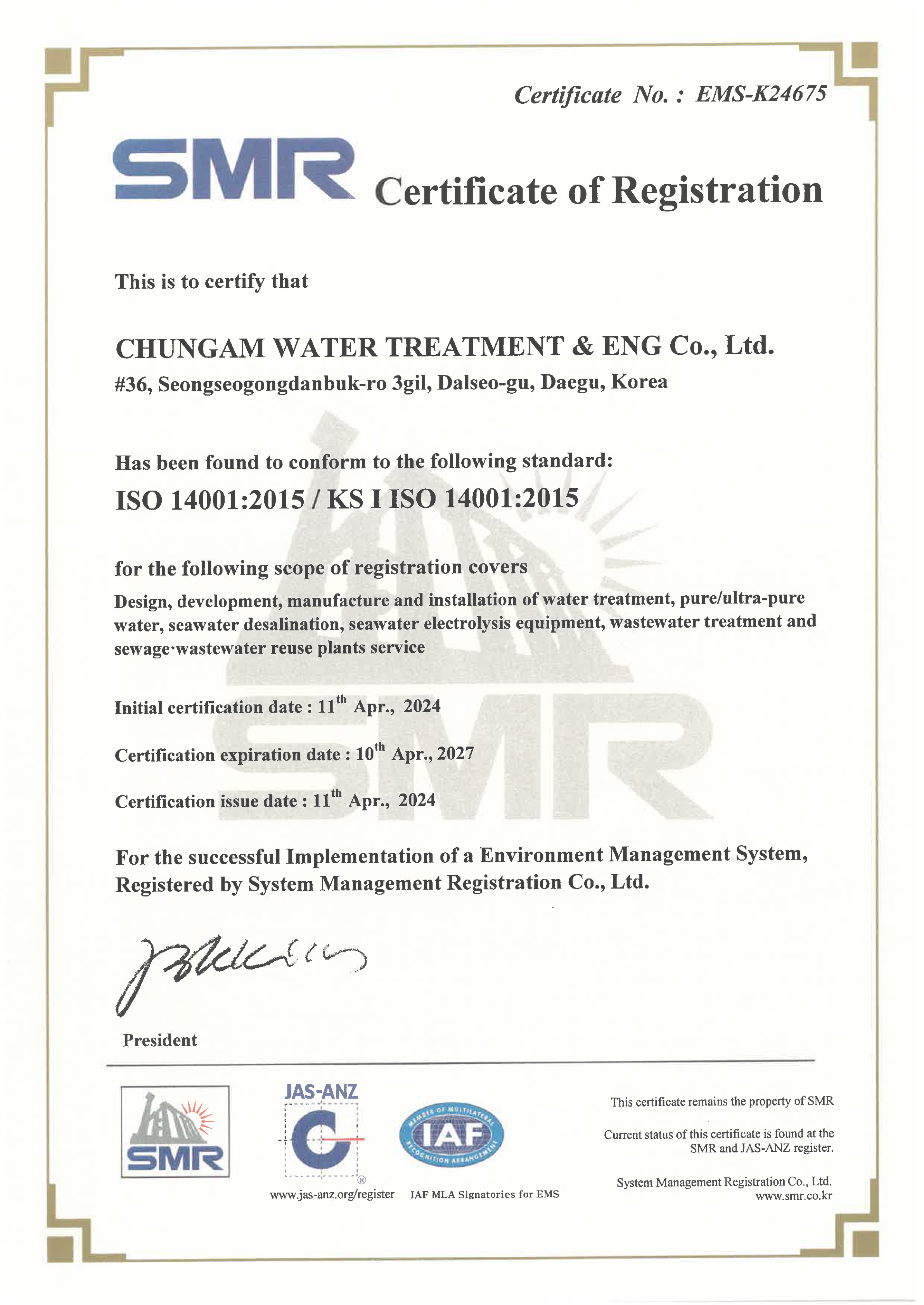 Chungam Water Treatment & Engineering Co., Ltd. is a specialized company that provides all solutions for water treatment processes.